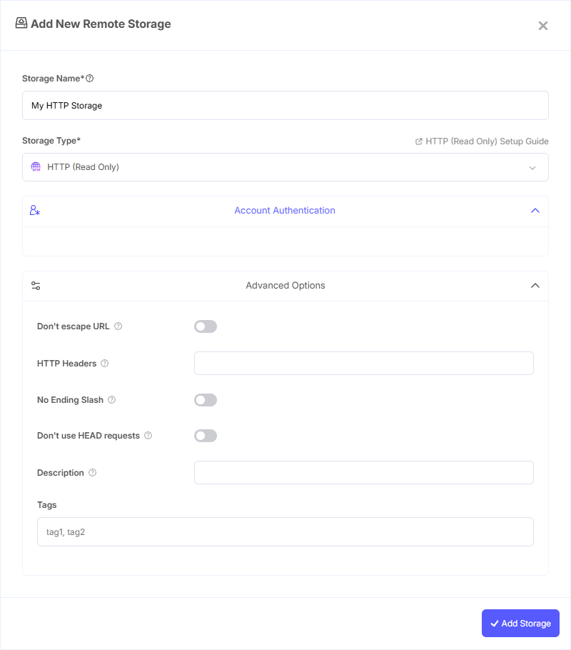 HTTP storage is read-only. You cannot upload or write backup data to an HTTP remote. This provider is useful for accessing files hosted on a web server for restore or sync operations.