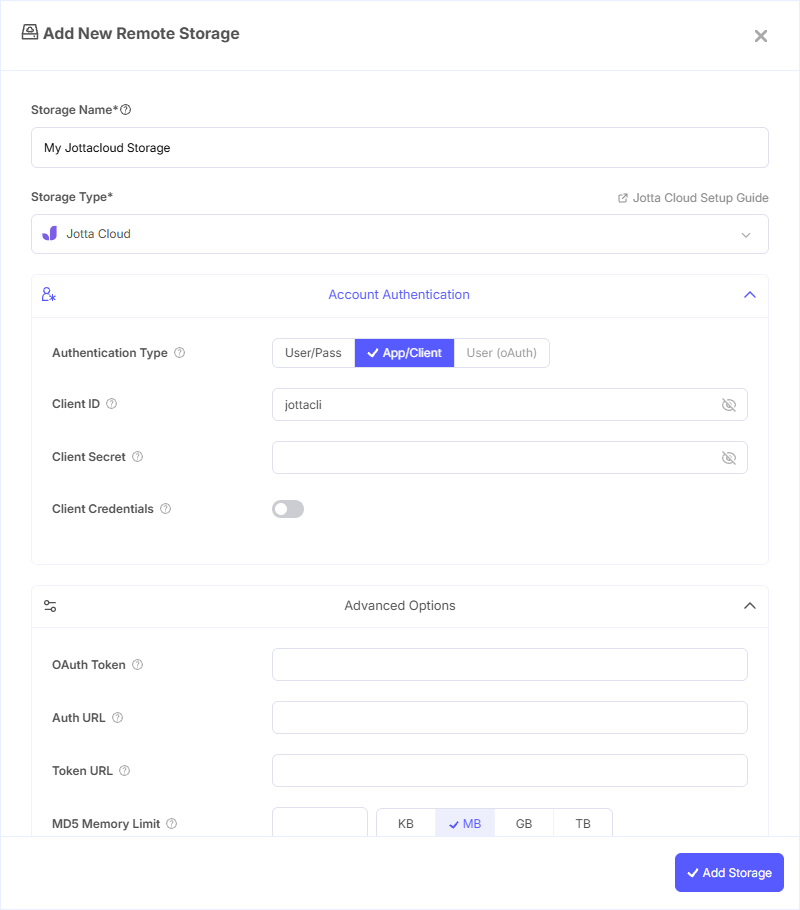 - Storage Name: A friendly name (e.g., "Jottacloud Backups")